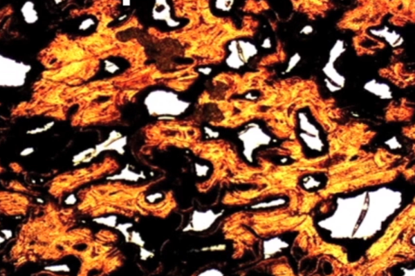 This picture, and many others like it, shows bone which appears in yellow and brown. However all throughout the openings there appears to be black material. That material is clotted blood. How did it get there and why is the blood clotted? The answer is most revealing!