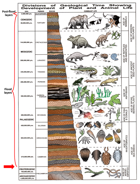 the red arrow. Where the flood sediments begin, that layer is where someone who wants to find major evidence of pre-flood civilizations should look, not in the very upper layers, which are post-flood. Nobody is looking where major evidence and perhaps most relics would most likely be found.
