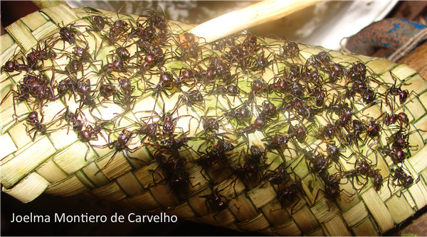 leader who sedates them in a specific liquid. Special gloves are woven for the ceremony, and while the ants are sedated the leader inserts them through the glove so that the stingers are on the inside. There are therefore over 50 ants per glove. Then the young man has to insert his hands into the glove and wear them for 10 minutes while being stung repeatedly by each angry ant! He must endure this horrific pain while attempting to not show it on his face. As if this isn't enough, they must go